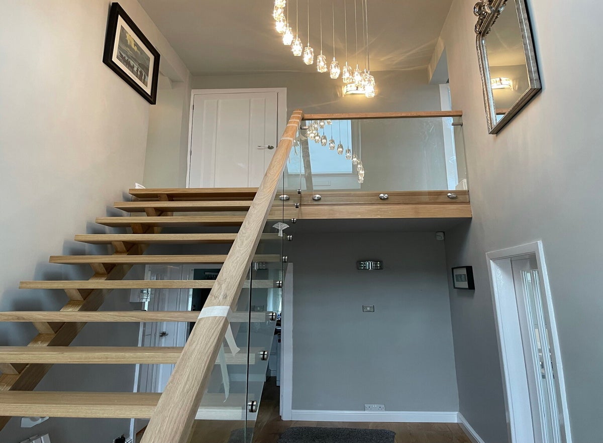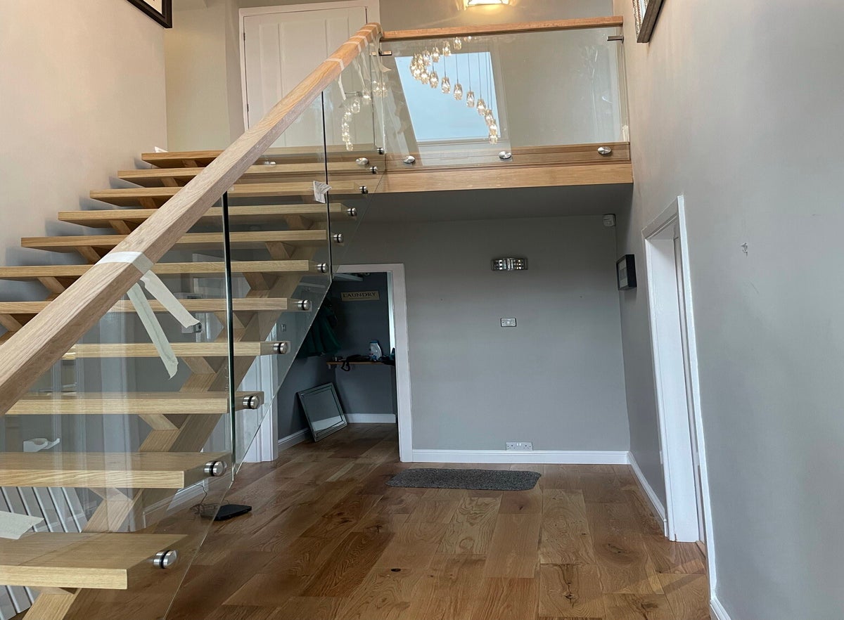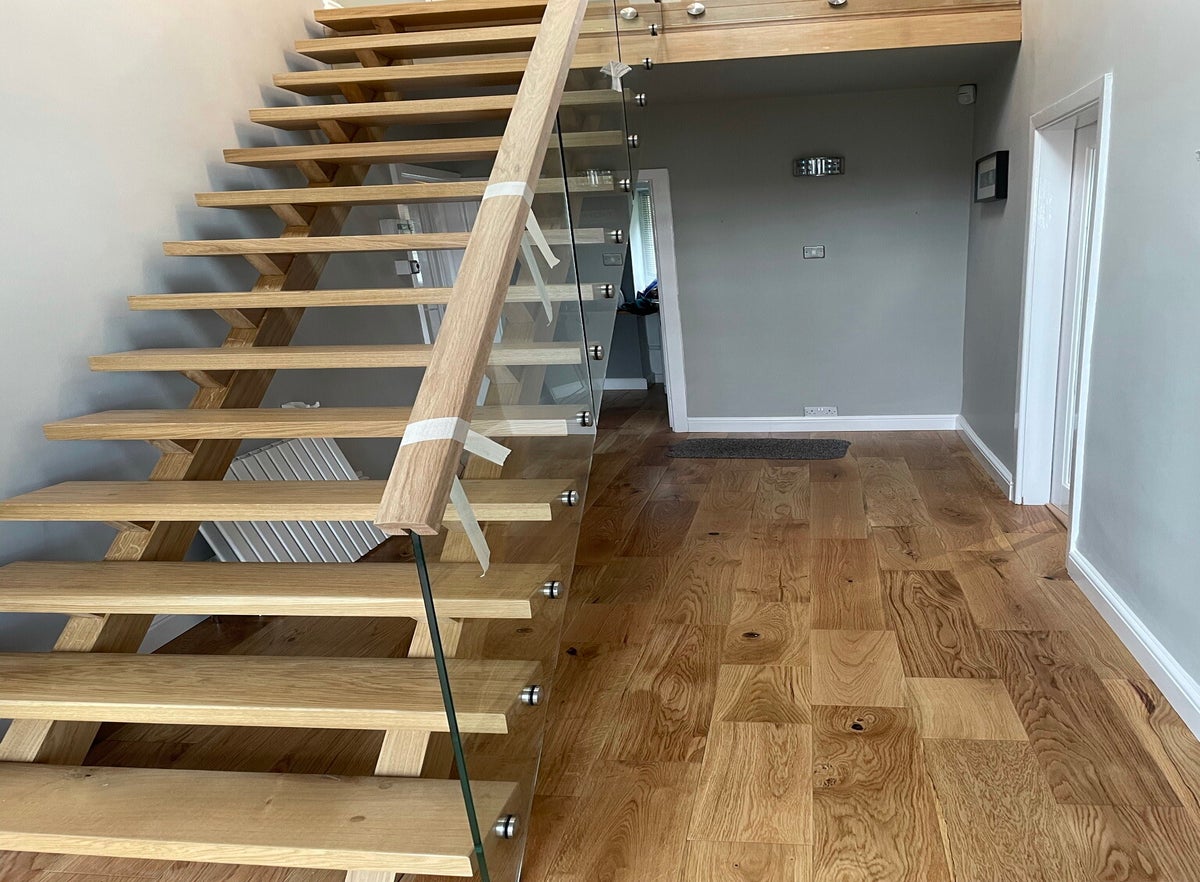 Bespoke solid oak staircase with glazed balustrade