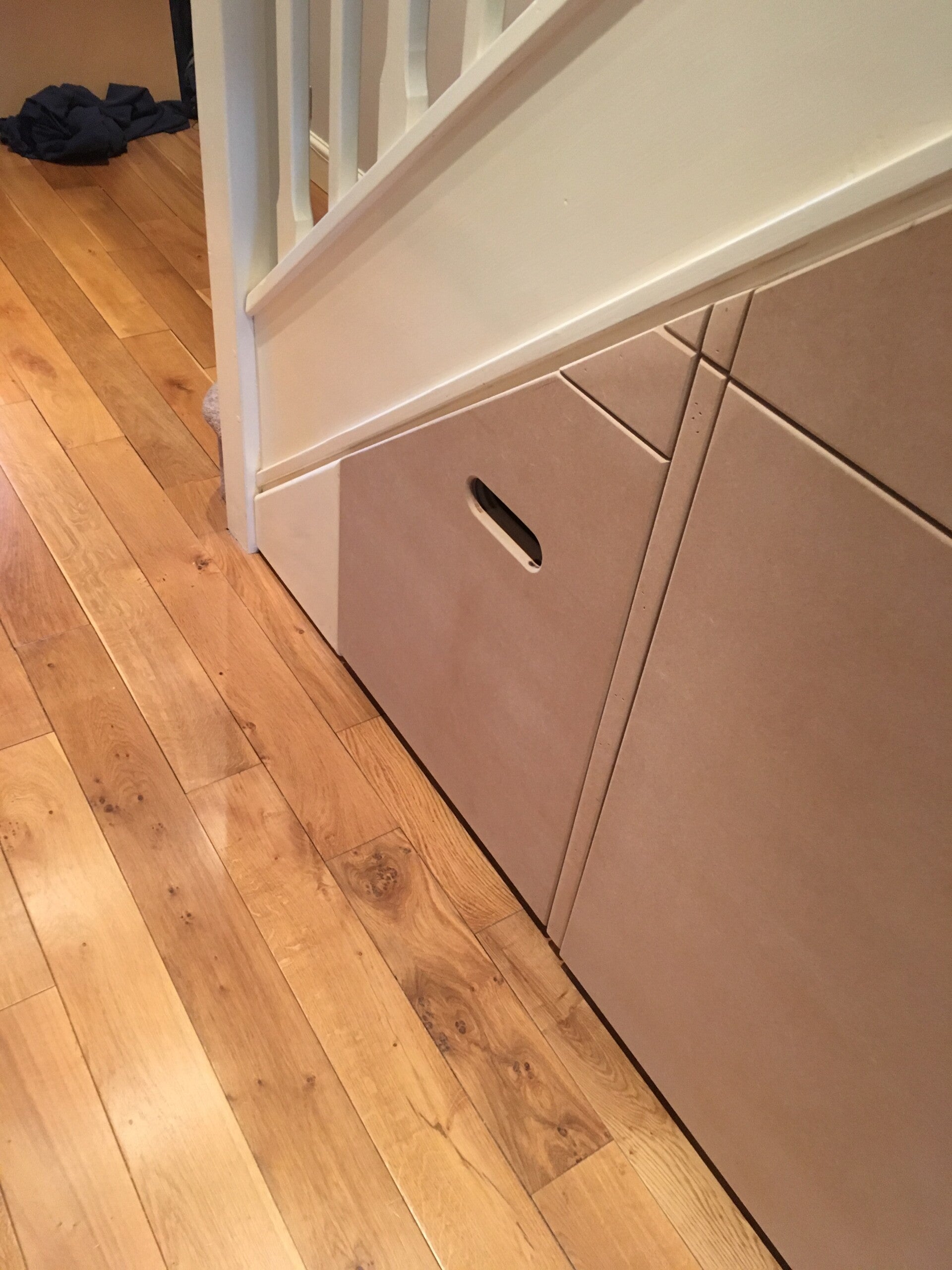 A sleek and practical MDF understairs storage solution, custom-designed and crafted onsite to meet the client’s exact specifications. Expertly installed to transform unused space into functional and stylish storage. Built with durability and longevity in mind, each storage unit is constructed using high-quality materials, ensuring it remains a reliable and aesthetically pleasing feature for years to come. Our team pays meticulous attention to detail, offering customization options such as soft-close drawers, adjustable shelving, and integrated lighting to create a storage solution that seamlessly blends form and function.
